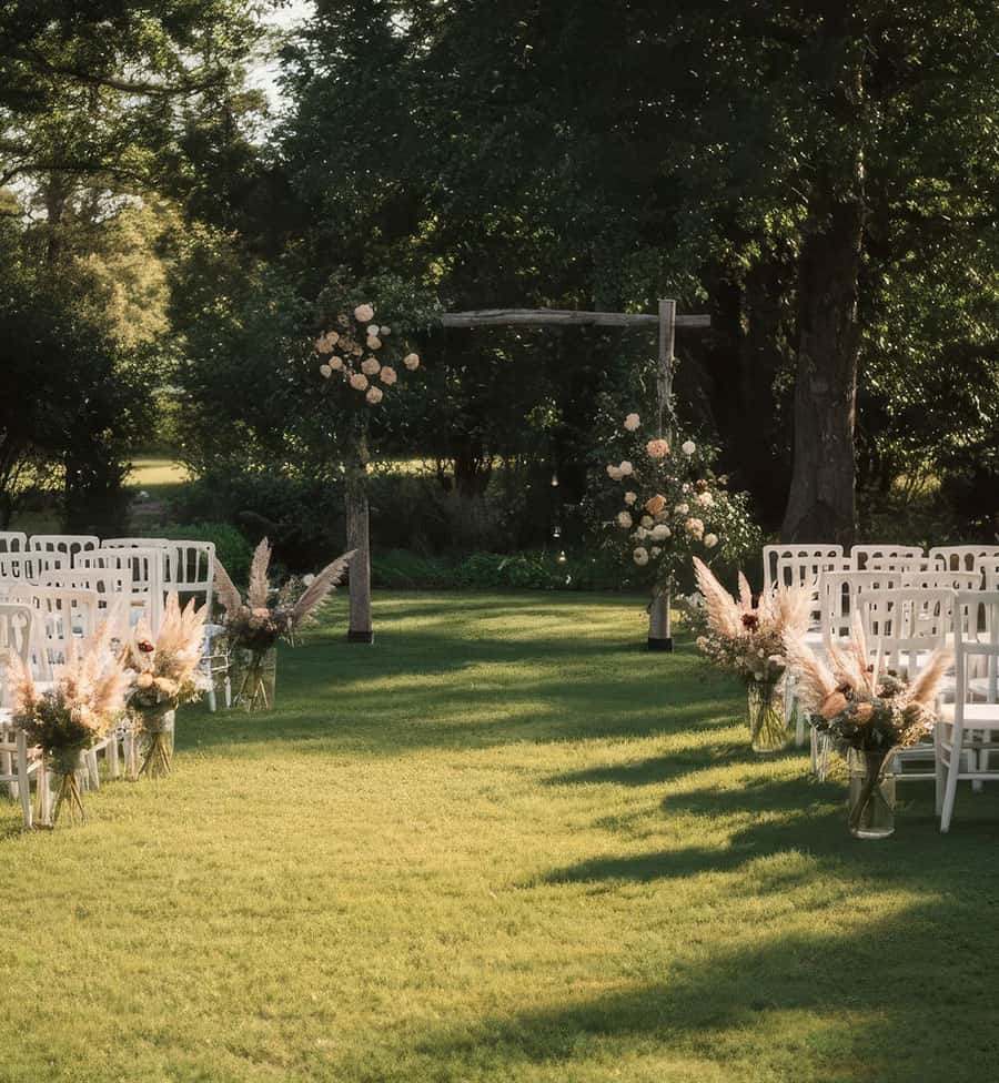 We gather in the garden for the ceremony. Please arrive a few minutes early.